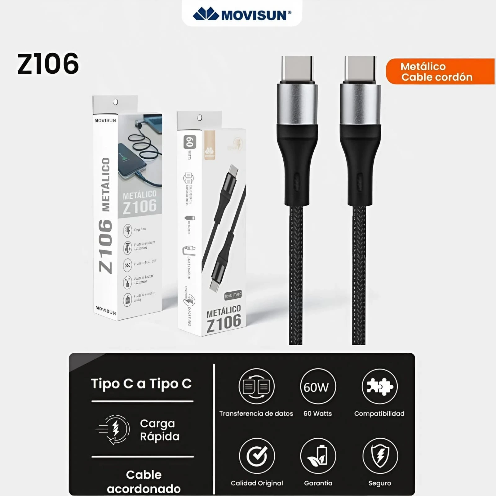 CABLE TIPO C TIPO C - CORDON (2 MTS) - Z206 - MOVISUN